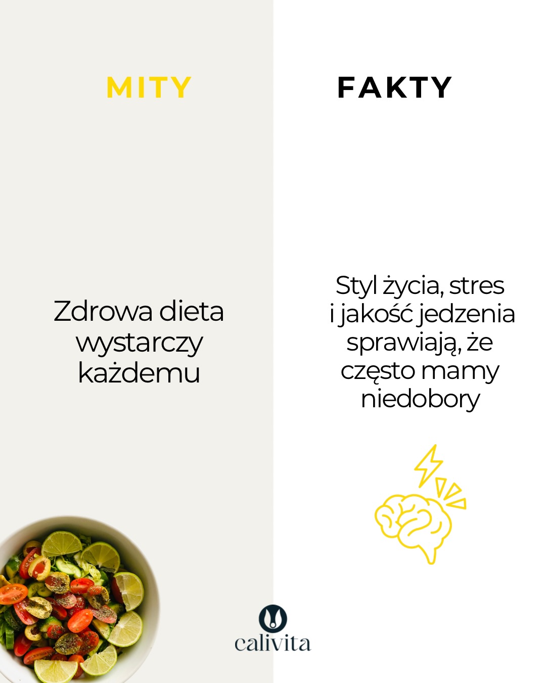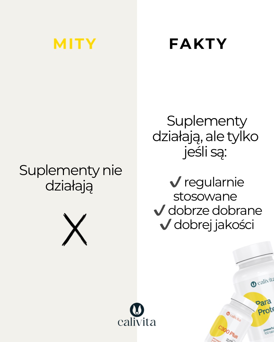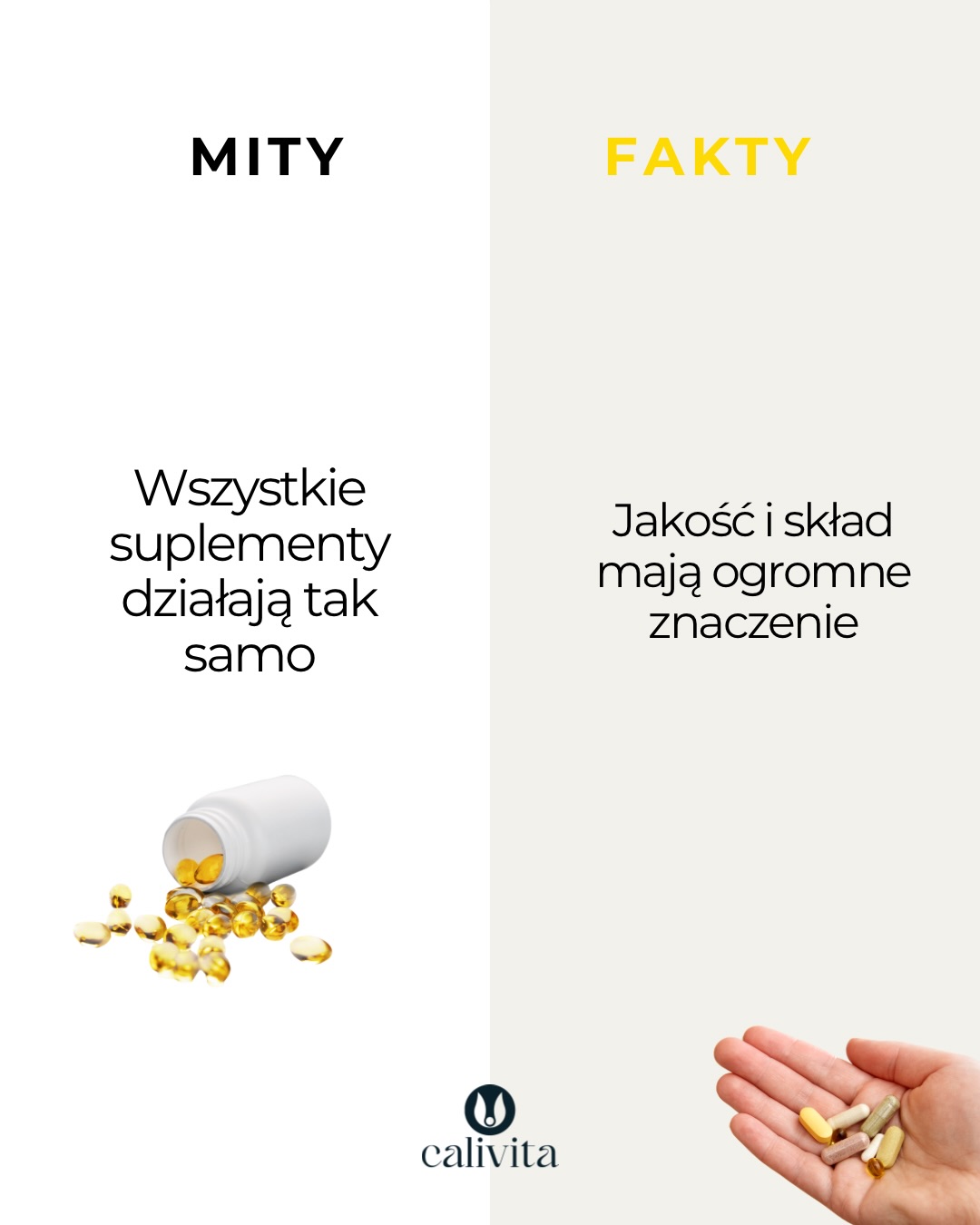 suplementy diety – temat, o którym mówi się coraz więcej, jedni je uwielbiają, inni podchodzą do nich z dystansem, a prawda jak zwykle leży gdzieś pośrodku suplementy nie są „magicznym rozwiązaniem”, ale mogą być realnym wsparciem dla organizmu, zwłaszcza gdy: – żyjemy szybko – mamy niedobory – chcemy zadbać o określone obszary zdrowia. Kluczem nie jest ilość, ale świadomość tego, co i dlaczego wybierasz bo zdrowie to nie przypadek, to suma codziennych decyzji. Jakie mity znasz na temat suplementów diety? • suplementy diety • Calivita